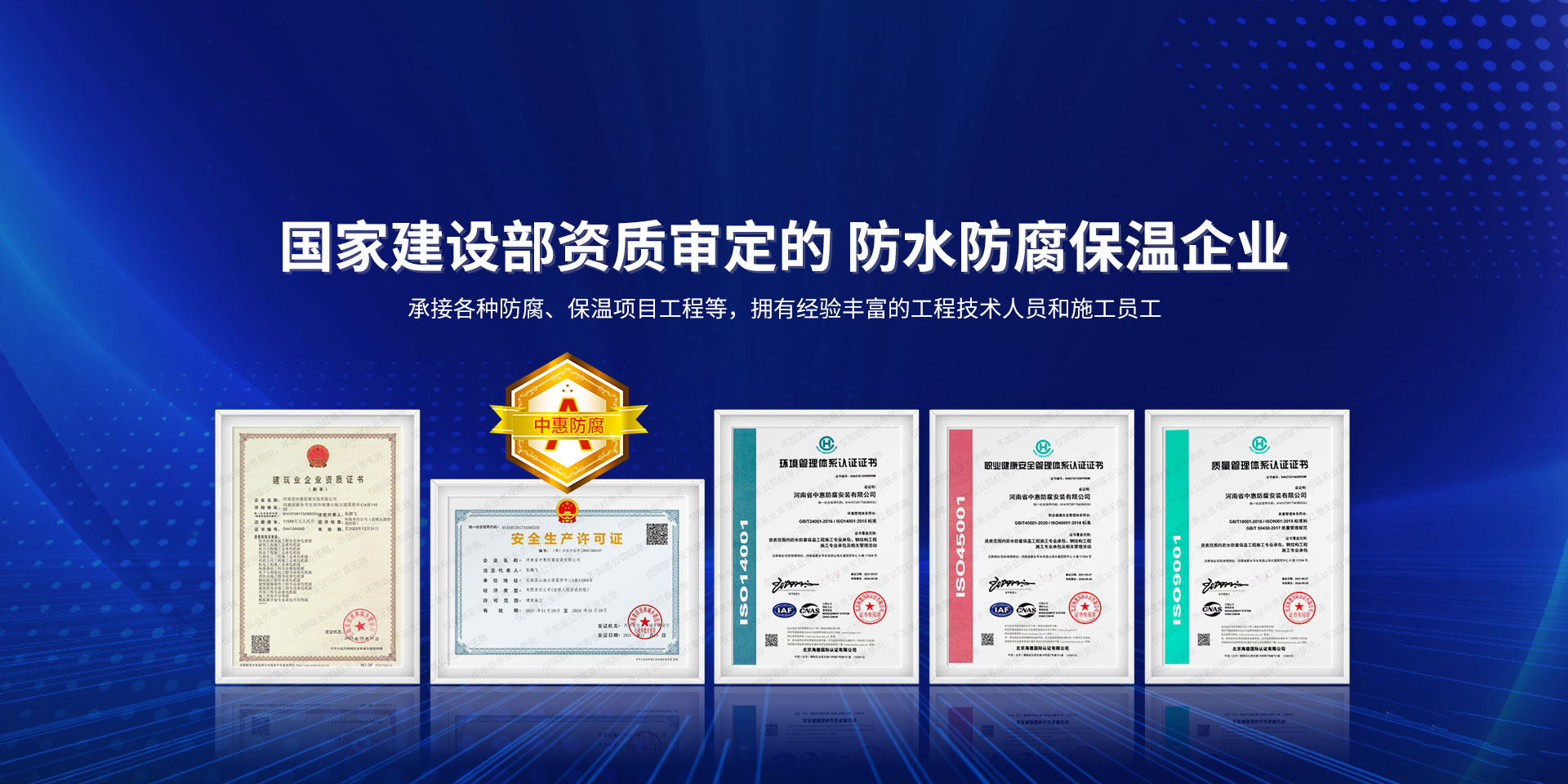 公司經營范圍:防水防腐保溫工程;消防設施工程;建筑裝修裝飾工程;建筑機電安裝工程;電力工程;建筑工程;石油化工工程;工業清洗工程;油罐清洗工程;鋼結構工程;環保工程;模板腳手架工程;電纜防火封堵、防污閃噴涂、外墻外保溫工程;各類施工勞務作業;設備維修、船舶鉚焊、涂裝;電力工程材料、建材、防水材料、防火材料、防腐保溫材料銷售,并相繼通過了GB/T19001-2008idtISO9001:2008GB/T50430-2007質量管理體系認證證書。GB/T24001-2004idtISO14001:2004環境管理體系認證證書。GB/T28001-2011idtOHSAS18001:2007職業健康安全管理體系認證證書。公司是中國防腐蝕于防護協會、中國施工企業管理協會、電力協會和中國鋼結構防水協會會員單位。 公司的經營業務涵蓋了石油、化工、電力、冶金、煤炭、船舶、國防、燃氣、水利、環保、交通運輸、航空及國防軍工和輕紡市政等行業的防腐保溫絕熱設備。鋼結構安裝、防火、防水、金屬噴鍍、聚脲噴繪、陰極保護、防滲透堵漏、玻璃鋼及各種磚版材料襯里、橡膠襯里、煙氣硫和耐酸溶劑腐蝕等工程施工。公司連續十年榮獲“省市先進施工企業”“安全生產先進單位”“重合同,守信用企業”和“AA***資質企業”的稱號。2000年被命名為市級文明單位,2002年被國家工商行政管理局命名為“重合同,守信用的企業”、被中國工業防腐蝕技術協會命名為“防腐蝕企業,能源節約及環境保護領域有豐富的經驗和***的業績。工程一次交驗合格率100%。其中攀枝花鋼鐵公司煉鐵廠四號高爐及熱風爐防腐工程、上海寶鋼公司煤氣柜防腐工程、撫順石油一廠裝置防腐項目、齊魯石化公司稀烴廠高塔防腐工程、吉林化學工業公司煉油廠油罐防腐工程、天津石化熱電廠六號爐頂棚聯絡管保溫工程、大慶油田(太倉)力神泵業工程、中國化學工程第十一建設工程、中原油田勘探局工程、中國石化銷售有限公司華北分部、魯皖輸油管道工程、貴州開磷息烽合成氨工程、陜西黃陵煤化工程、中國石油天然氣西部管道塔里木輸油工程、邯鋼集團邯寶鋼鐵公司煉鐵工程、德州供電工程、吉寶(南通)船廠工程,偃師華潤熱力工程、鄭州熱力總公司。 河南省中惠防腐安裝有限公司愿以豐富的施工經驗,***的技術,***的設備,***的管理,***的服務,竭誠為國內外廣大的用戶提供***滿意、******的工程作品。 我公司愿與國內外同仁一道,團結協作,共同推進防腐蝕行業發展! 公司地址:河南省長垣縣建設路北段360號 固定電話:0373-8866488 郵編:453400 網址:http://www_zhff_com_cn.ugghkcotra.com